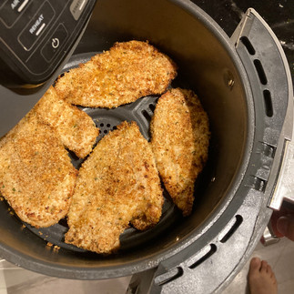 4. Air fry in the air fryer at 390°F or 200°C for 10-12 minutes. After the first 7 minutes, open the air fryer, flip the chicken to the other side, and continue cooking (cook for 3 minutes, depending on the size of the chicken breast used).